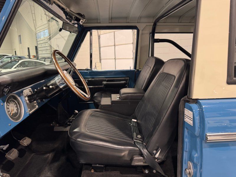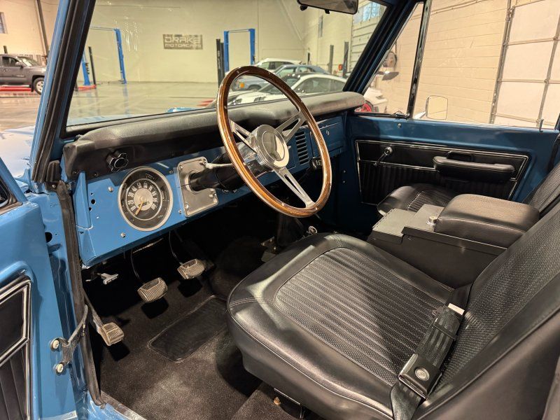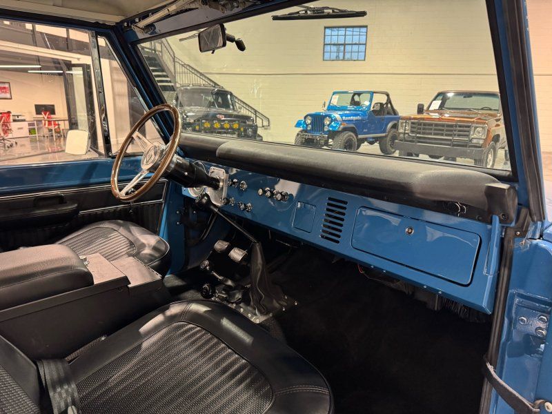 If you have been looking for a super nice bronco that is frame off restored and has the drivability of a modern car then this is the one! 302 Engine, Edelbrock Pro Flow 4 Fuel injection with a new fuel pump feeding from a new 23 gallon gas tank. MSD electronic ignition, aluminum radiator, dual exhaust with short Wild Horses headers. The paint is Ford Harbor Blue #7. New carpet and insulation. The transfer cases and rear differential have been gone through with new bearings and wheel bearings have been re packed. Warn locking hubs on a Dana 44 front and ford 9" rear with 4.11 gears. New AX15 5 Speed transmission and Wild Horses twin stick on a Dana 20 transfer case. 1" body lift. New top is a 5-bow manufactured by Desert Classics. Flaming river tilt steering column. New painless wiring harness. Original seat frames were restored, re-foamed and re-skinned with original factory vinyl. Borgeson power steering pump. Brake booster with new upgraded disc brakes in front and new rear brakes. New glass and seals. Originally this was a U14 half cab but was converted. Vin from frame matches glovebox tag. The title is in actual miles. Very nice driver!!