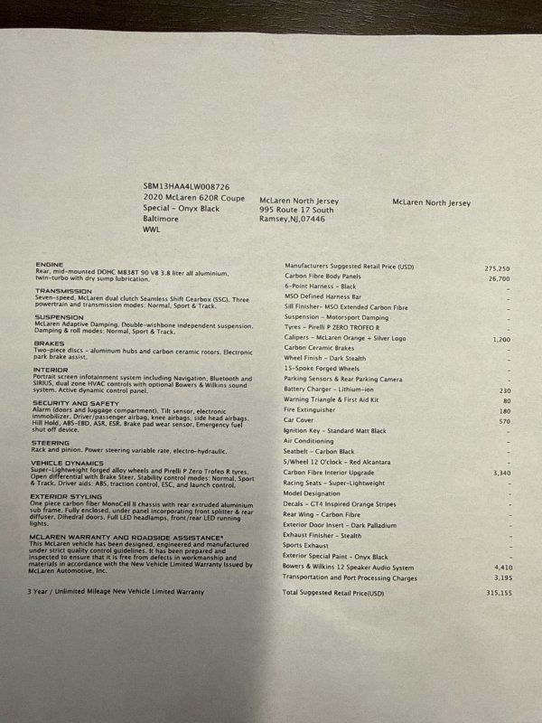 Ultra-Rare 2020 McLaren 620R Coupe – XP1 Development Car – Onyx Black
